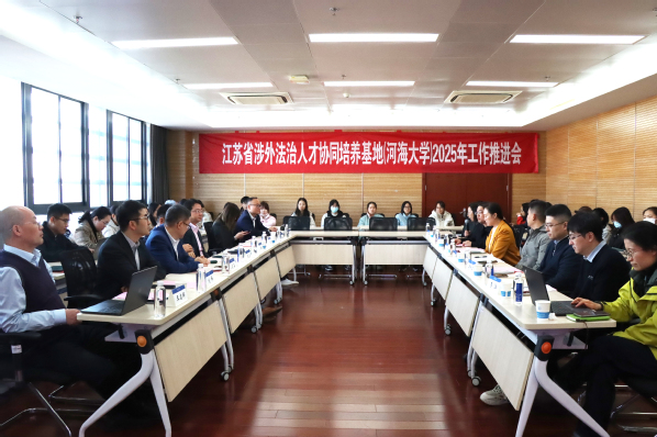 2025年11月19日,江苏省涉外法治人才协同培养基地(河海大学)2025年工作推进会在河海大学行政楼902法学院学术报告厅举行。江苏省法学会研究处副处长、南京江北新区综合治理局副局长、扬子江法务区专项工作组副组长沈定成,南京理工大学知识产权学院教授梅术文,欧洲华人律师协会代表,河海大学法学院领导班子成员、教师代表、学生代表等共同参会。会议由法学院副院长吴志红主持。